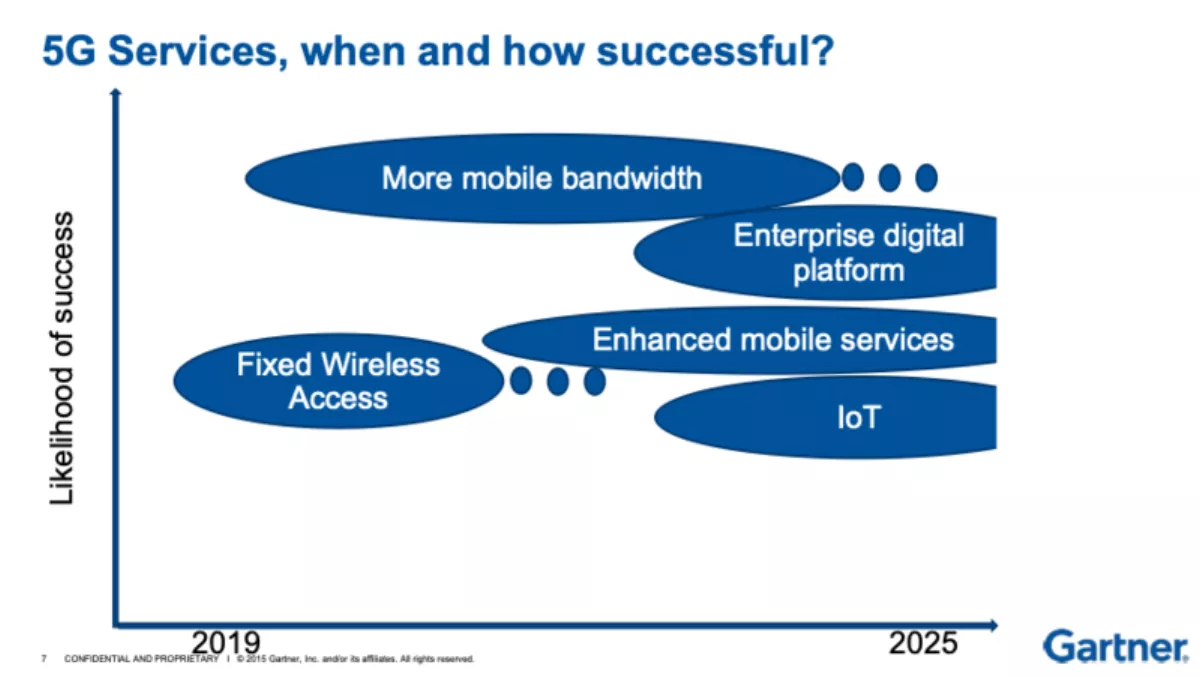 He provides a neat graphic summarizing his expectations for 5G services roll-out over the next 6 years – see figure.