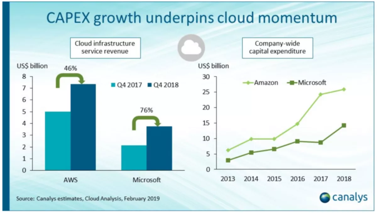 Canalys research analyst Daniel Liu says fuelling this growth is the massive infrastructure investments both companies are involved with to expand their global coverage and refresh existing data centers.