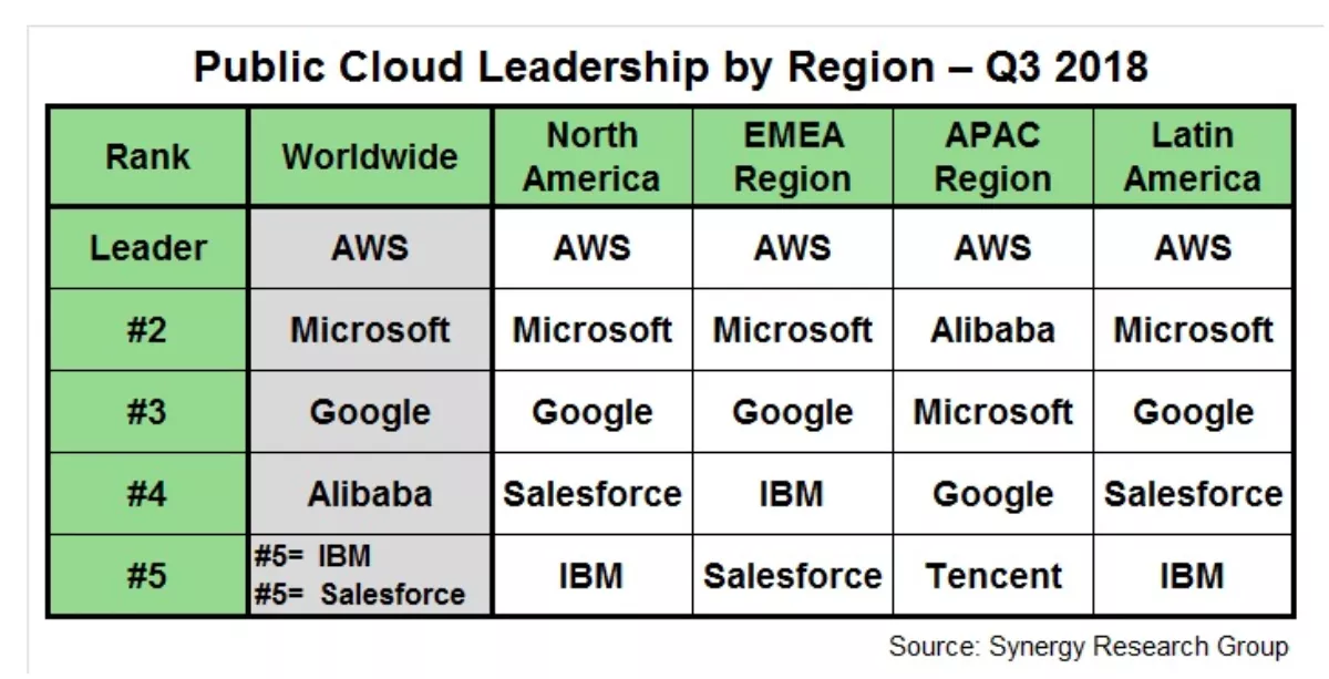 The end result being Alibaba wresting second place from Microsoft ,while Tencent claims fifth place, which in the other regions is taken by IBM or Salesforce.