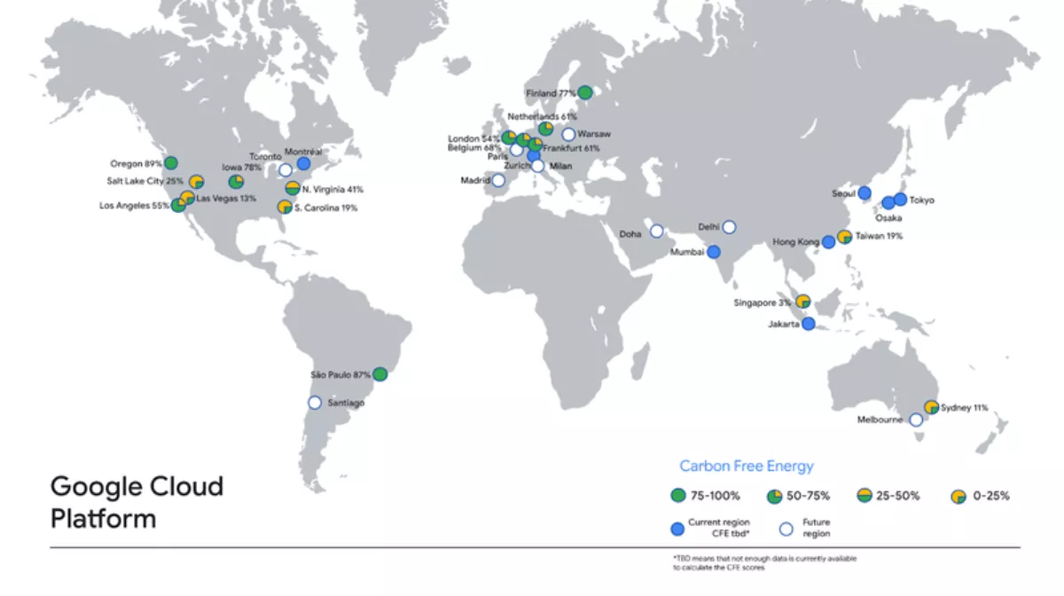 Google Cloud also states there is not enough data to calculate energy generations from major locations such as Tokyo, Hong Kong, Seoul, Jakarta, and Montreal,