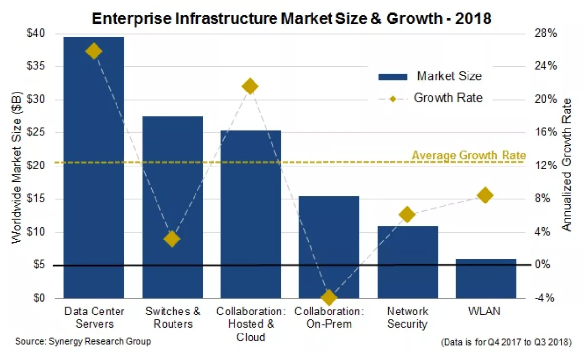 The Synergy Research Group has released new data concerning six key enterprise IT infrastructure sectors.